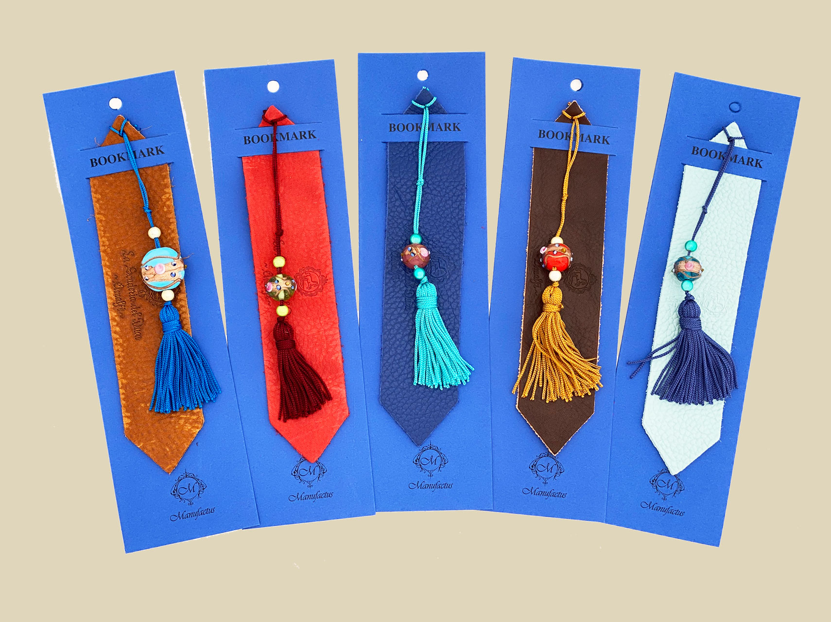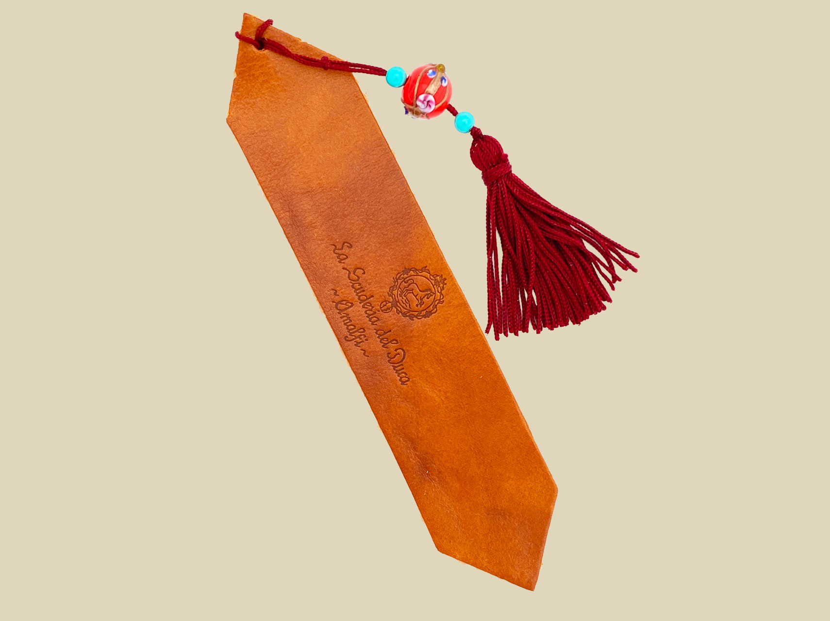 Segnalibro in pelle con ciondolo. I colori della pelle sono assortiti. Lavorazione artigianale.