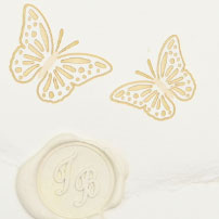 Partecipazione in carta di Amalfi che si chiude a busta in tre parti, traforate al laser. Disponibile in avorio, misura cm. 18,5x30 aperta e chiusa circa cm. 18,5x11 gr. 200 circa. La partecipazione è stata realizzata con una tecnica di traforo eseguito al laser. Questa tecnologia ha permesso di creare un “merletto” sulla carta tradizionale di Amalfi fatta a mano. Può essere spedita normalmente a mezzo posta. La filigrana presenta lo stemma di Amalfi. Si presta per essere scritta a mano, stampata in tipografia o con stampanti a getto di inchiostro, disponibili anche le buste avorio.
