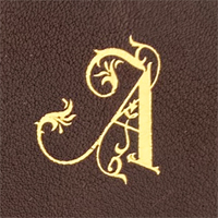 Quaderni in pelle con capolettera stampato. La stampa viene eseguita in modo artigianale sulla pelle utilizzando una foglia di oro. Misura cm. 8x13 interno con le righe.