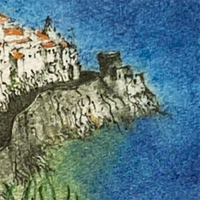 Cartoncini acquerello Amalfi dal convento dei Cappuccini. Il cartoncino si apre a libro e misura cm. 11,5 x 17,5 è possibile acquistare il cartoncino singolo con la busta 12x18 cm. oppure una scatola che contiene 5 cartoncini e 5 buste. I disegni sono stati realizzati dall'artista Americana Sally Spector per La Scuderia del Duca.